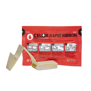Celox Rapid Ribbon brings the benefits of Celox Rapid Gauze in a 1 inch strip. The low profile pack means Celox Rapid Ribbon is easily concealed and the reduced size makes it ideal for treating narrow entry wounds such as bullet, blast fragment and stab injuries.
