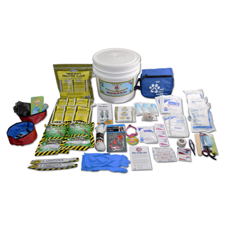 This complete emergency survival kit contains recommended items to keep your cat alive and well after a disaster. It has a 5-year shelf-life.